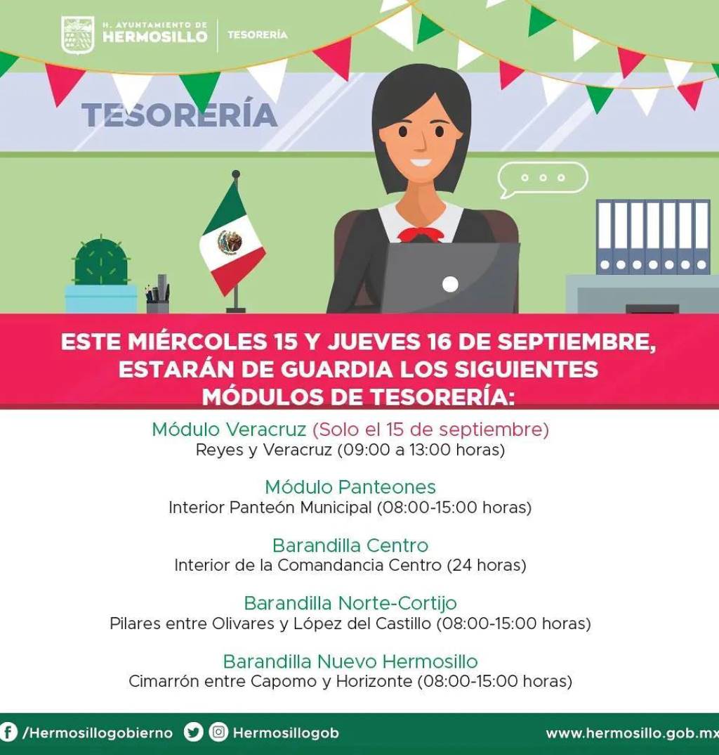 Este miércoles 15 y jueves 16 de septiembre tendremos los siguientes módulos de tesorería de guardia: