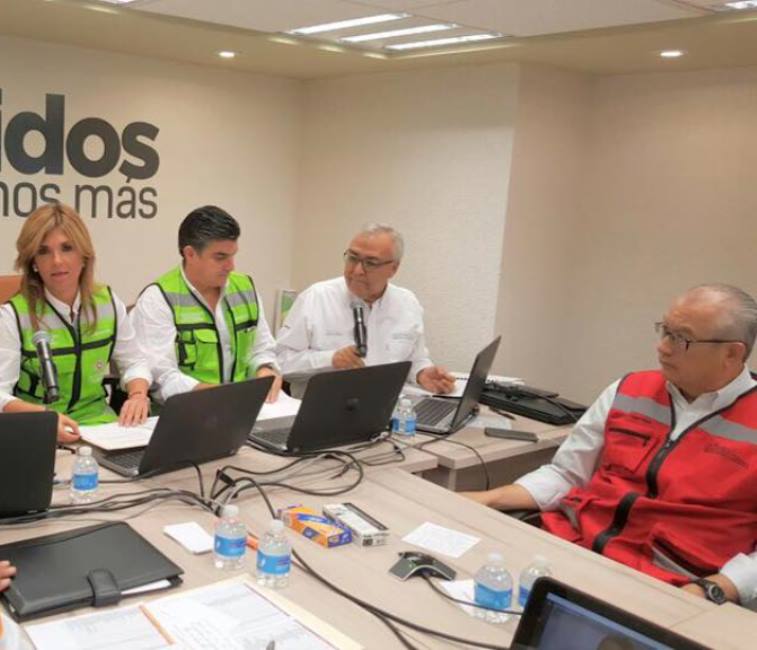 En el Centro de Operaciones de Emergencia comunicándonos con presidentes municipales afectados por la contingencia para que atiendan oportunamente el llamado/Facebook Claudia Pavlovich