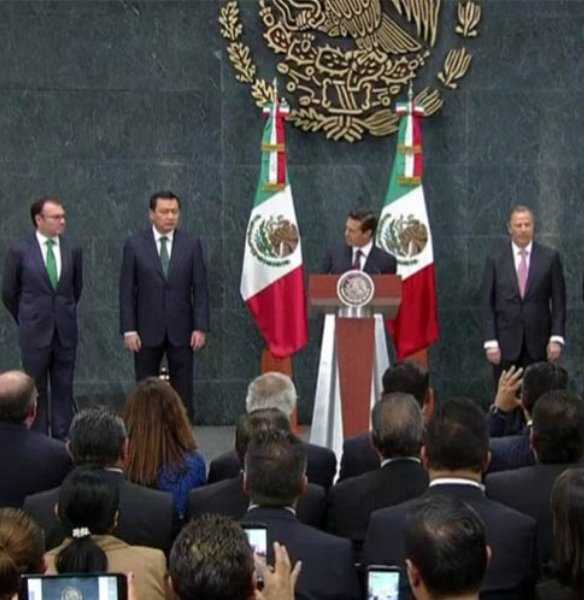 El Presidente Enrique Peña Nieto informó de los cambios en el Gabinete; Videgaray presentó su renuncia la mañana de este miércoles. Durante el anuncio oficial de los cambios en el gabinete, el Presidente instruyó a José Antonio Meade a que al frente de la Secretaría de Hacienda y Crédito Público coordine las políticas que permitan alcanzar la estabilidad macroeconómica del país/Excélsior