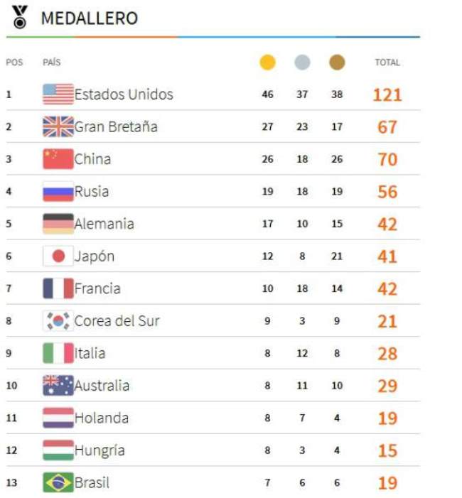 México con sus cinco medallas, tres de plata y dos de bronce, se ubicó en el lugar 61.