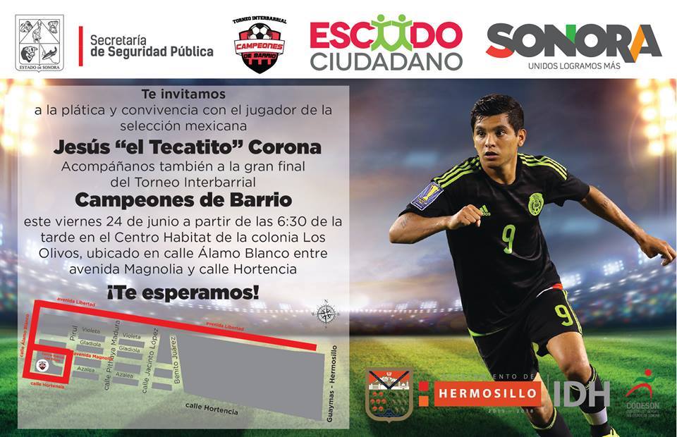 La Secretaría de Seguridad Pública te invita hoy a convivir con el deportista Jesús"El Tecatito" Corona