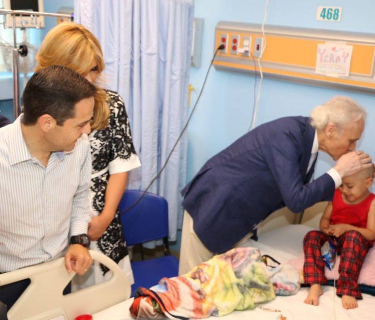 Realizan una visita la Gobernadora Claudia Pavlovich, el Tenor José Carreras y el Presidente Municipal Manuel Acosta a niños del Área de Oncología del Hospital Infantil del Estado de Sonora.