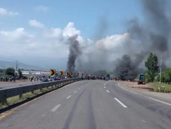 Normalistas se enfrentan con policías en la autopista Siglo XXI….