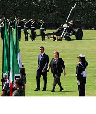 El Presidente de México da la cordial bienvenida a la mandataria chilena Michelle Bachelet en Campo Marte, quien inicia visita de Estado/Excélsior