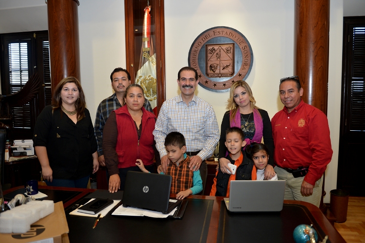 Muy agradecidos con el Gobernador Guillermo Padrés se mostraron los niños Víctor Oswaldo Furcado Briseño y Paúl Guadalupe Lomas Barraza, ambos con discapacidad visual, después de que el mandatario cumpliera sus peticiones y les entregará laptops especiales adaptadas para sus necesidades.