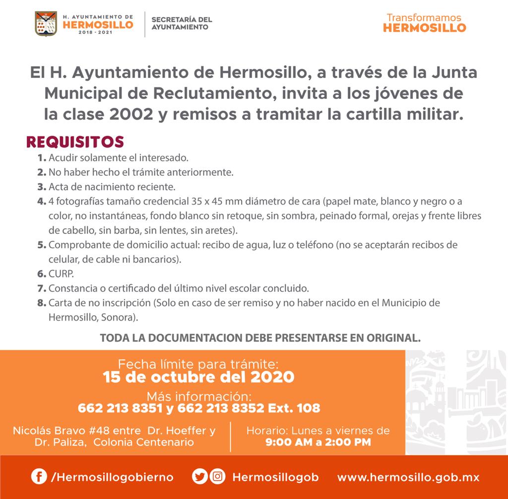 Jóvenes de clase 2002 y remisos, la Junta Municipal de Reclutamiento presenta los requisitos a cumplir para el trámite de la precartilla militar