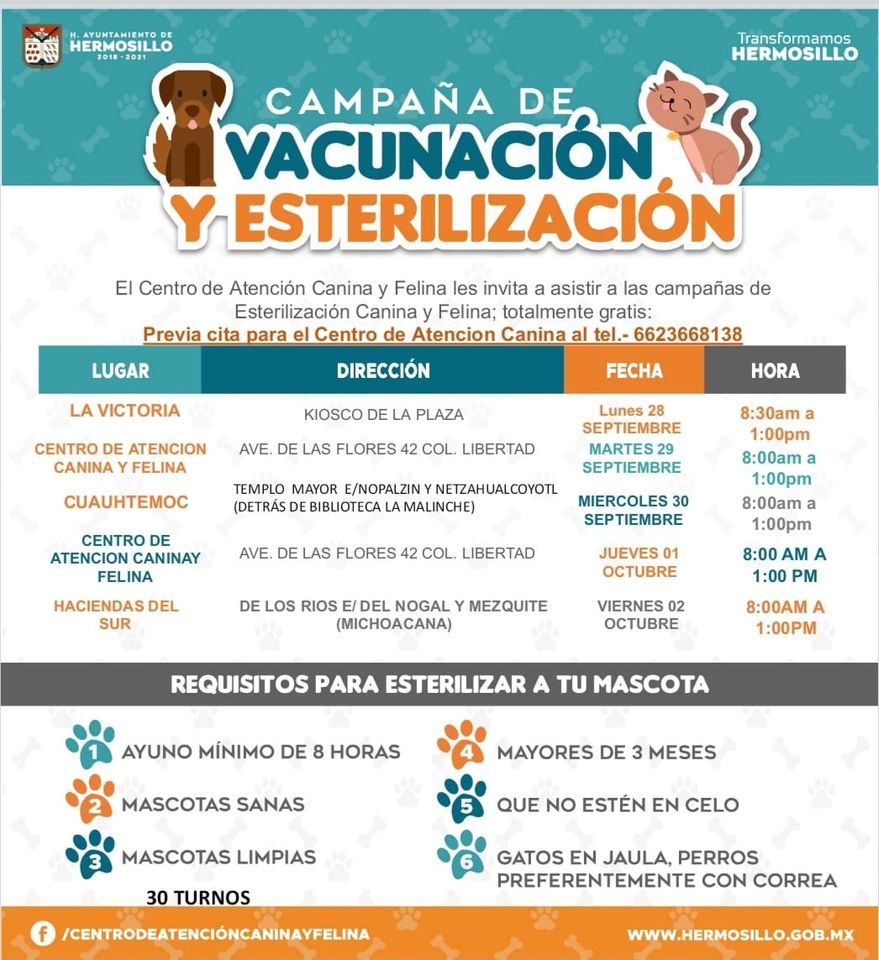 Las esterilizaciónes en la oficina será con previa cita al celular 6623668138 y en las colonias serán atendidos conforme lleguen.