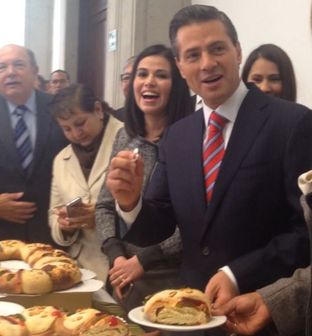 Peña parte rosca de Reyes; le sale el muñeco.
