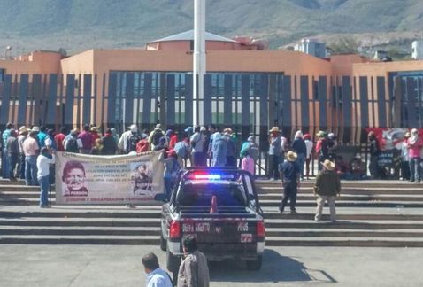 Maestros toman Palacio de Gobierno de Guerrero. Integrantes de la CETEG derribaron una puerta de cuatro metros de altura e ingresaron a la explanada principal; ayer declararon clausurado el edificio, pero hoy amaneció abierto/Milenio(Rogelio Agustín)