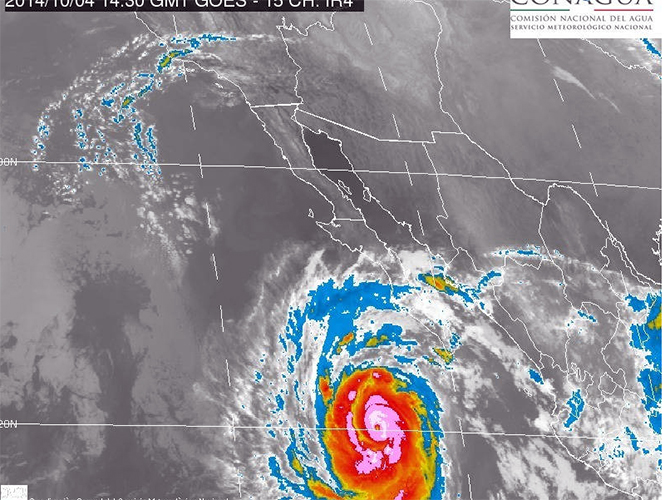 La Conagua informó que a las 13:00 horas de este sábado, "Simon" se convirtió en huracán categoría III, con vientos máximos de 185 km/h, con rachas de viento a 225 km/h.