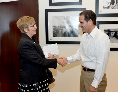 El Gobernador Guillermo Padrés recibió en su oficina en Palacio de Gobierno a la Cónsul de Estados Unidos en Hermosillo, Karen Ogle, con quien habló de temas de relevancia tanto para Sonora como para Estados Unidos.