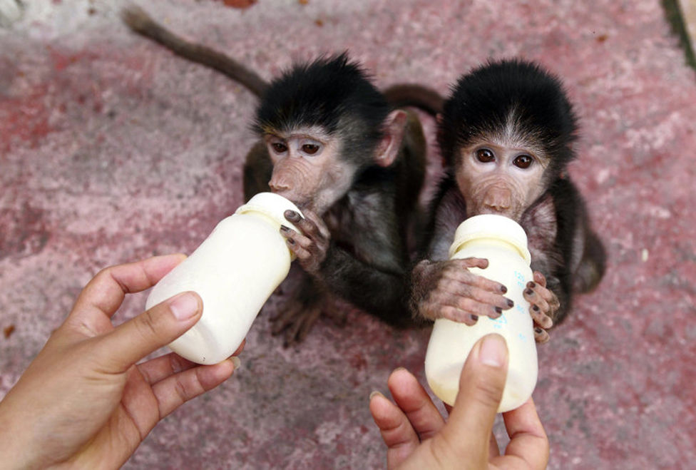 China. Un empleado alimenta a un par de babuinos bebé en un zoológico de Hangzhou, provincia de Zhejiang. (Reuters/China Daily )