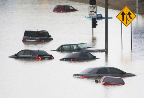 Decenas de autos quedaron bajo el agua debido a las torrenciales precipitaciones que afectaron esa ciudad estadunidense como consecuencia de los remanentes de “Norberto”.