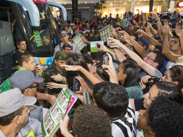 Una vez más, cientos de seguidores mexicanos y algunos brasileños se dieron cita en las afueras del hotel de concentración del equipo para ver de cerca a los jugadores.