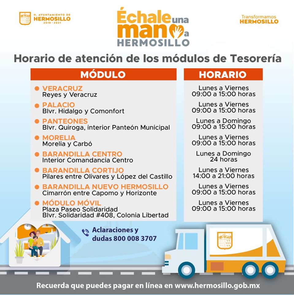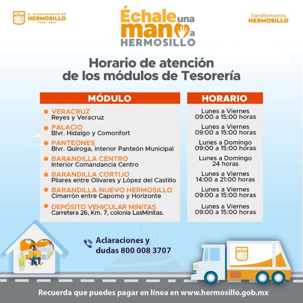 #AVISO Tesorería Municipal te informa sobre los horarios en los módulos de atención para pagos