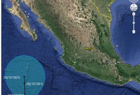 La tormenta tropical mantiene vientos máximos sostenidos de 120 km/hr y se mueve hacia el oeste-noroeste a 7km/hr.