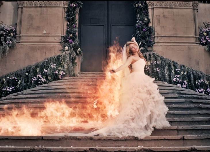 La cantante colombiana estrenó el video de su nueva canción "Empire", el segundo sencillo de su más reciente disco. En el videoclip se ve a Shakira con un vestido de novia que saca fuego/El Universal