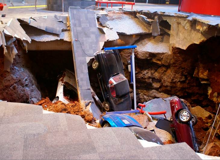 SOCAVÓN SE TRAGA 8 AUTOS EN MUSEO DEL CORVETTE