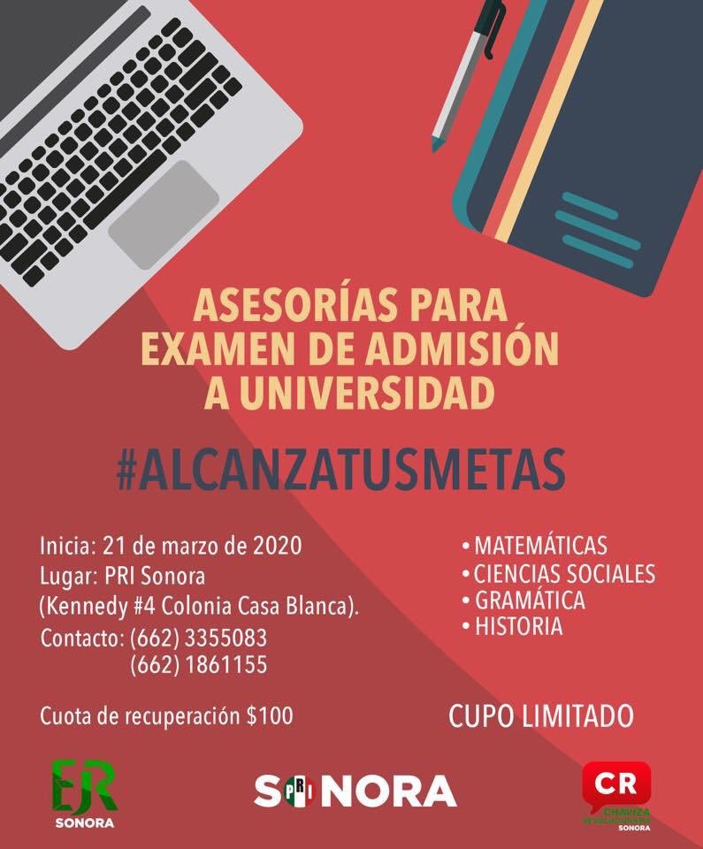 PRI Sonora ofrece asesorías para examen de admisión a universidad