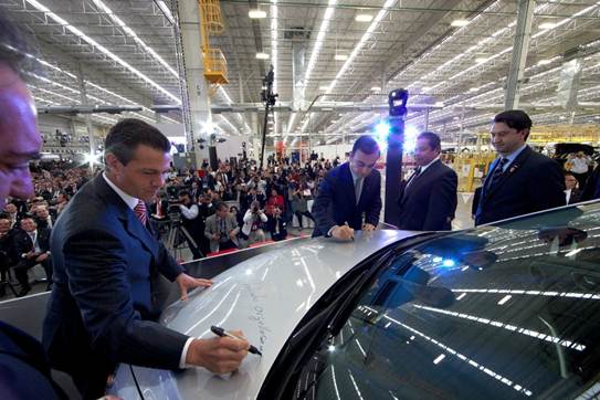 El presidente Peña Nieto inauguró la planta Nissan Aguascalientes 2, que tuvo una inversión de 2 mil millones de dólares, donde platicó de forma improvisada con los trabajadores a quienes expresó la generación de 3 mil empleos directos y casi 10 mil indirectos/El Universal
