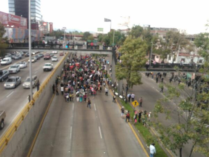 Después de concentrarse en el Ángel de la Independencia, los jóvenes se dirigieron a la Torre de Pemex donde bloquearon Marina Nacional.