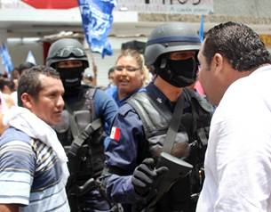 El candidato del Partido de la Revolución Democrática, Julio Saldaña Morán, tuvo que ser atendido por paramédicos tras recibir un botellazo en el rostro