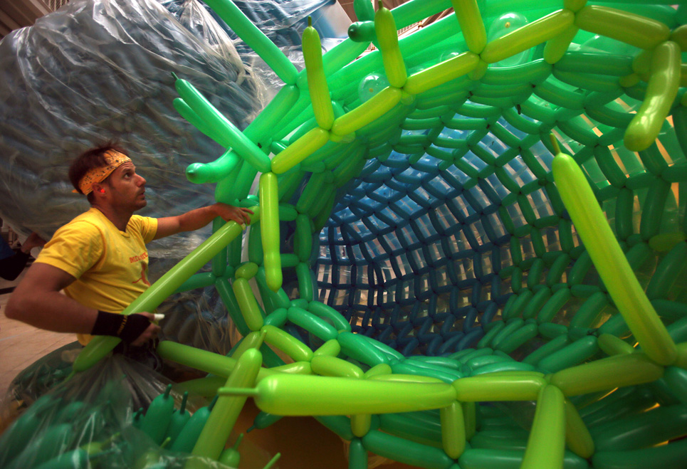 El artista neoyorquino Jason Hackenwerth comienza a trabajar en una escultura globo gigante llamado Piscis, el lunes 25 de marzo 2013, en el interior del Museo Nacional de Escocia, en Edimburgo, Escocia. Cuando se haya completado la escultura ocupará las tres plantas del museo y está diseñada para representar el mundo natural.