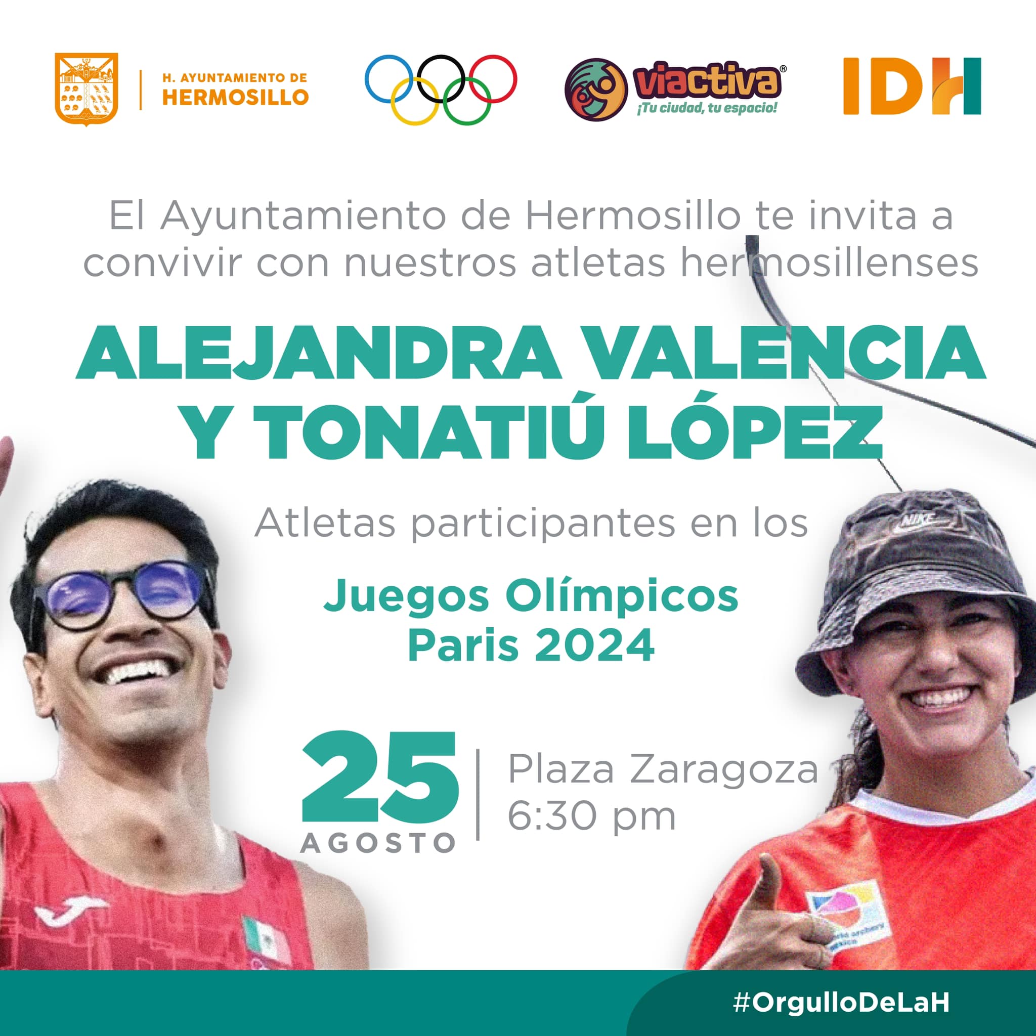 El Alcalde Antonio Astiazarán recibirá a Alejandra Valencia y Tonatiú López, grandes atletas hermosillenses que con mucho orgullo representaron a México en los Juegos Olímpicos de Paris 2024.