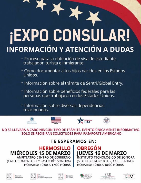 En Hermosillo y Ciudad Obregón se realizará la #ExpoConsular. Aclara las dudas que tengas sobre alguno de estos trámites. ¡Infórmate!...Gobierno de Sonora