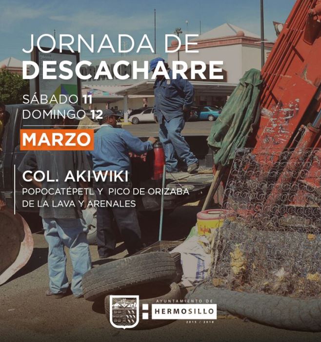 Los invitamos a participar para juntos tener un #HermosilloLimpio al descacharre este 11 y 12 de marzo en la colonia Akiwiki/Gob Hermosillo