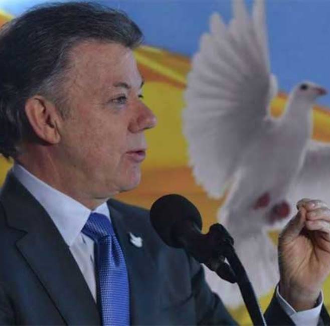 El presidente de Colombia obtiene el Premio Nobel de la Paz… El Nobel de la Paz es otorgado a Santos en apoyo a su decisión de invitar a todas las partes a un diálogo nacional en pro del proceso de paz, luego de que los colombianos dijeran 'no' al acuerdo entre gobierno y FARC/EFE
